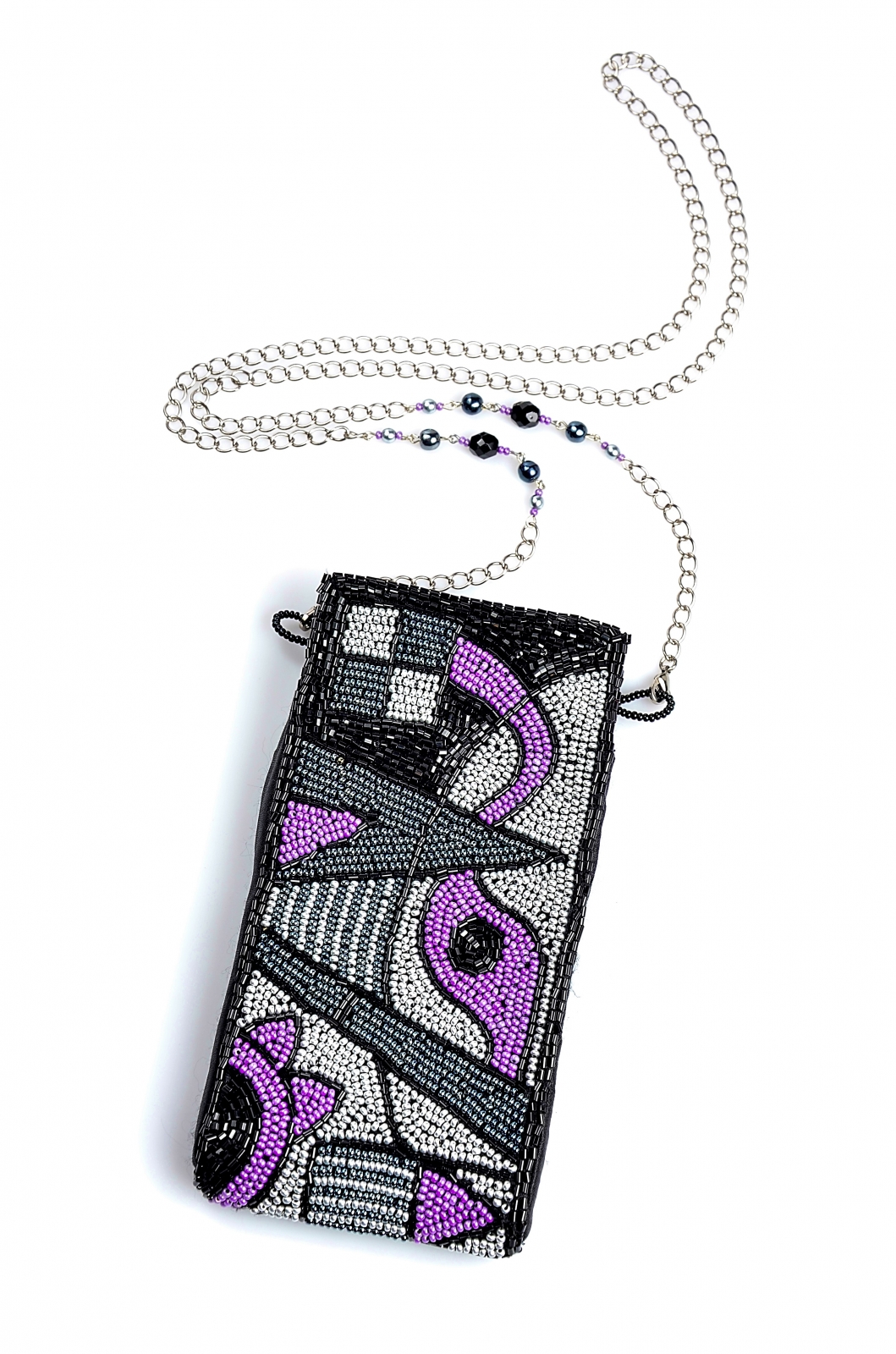 Celoháčkované korálkové pouzdro na mobil nebo cigarety s odepínacím řetízkem 90 cm, vzor ,,Picasso", bez zapínání.